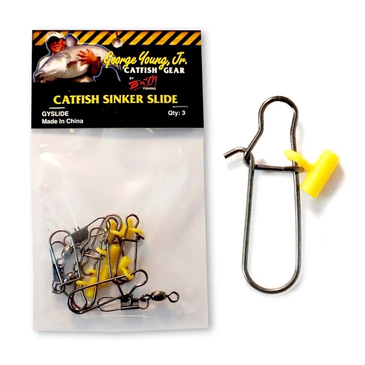 George Young JR, catfish sinker slide, these sinker slides are great for several applications, from anchor fishing, drift fishing and more, the quick snap on the slide allows the angler to change weight sizes as conditions change, with retying your whole rig. Package of 3 Slides.